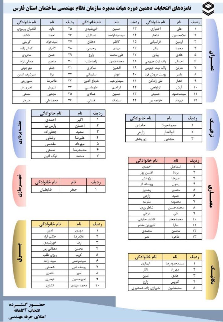 اسامی نامزدهای انتخابات نظام مهندسی ساختمان فارس